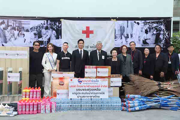 นายอุกฤษณ์ ภาควิวรรธ รองผู้จัดการใหญ่ด้านวางแผนการค้าและการตลาด, นายจิรภัทร สายเพชร ผู้จัดการทั่วไปฝ่ายสื่อสารการตลาด และส่งเสริมการตลาด พร้อมด้วยอินฟลูเอนเซอร์สาย Biker ชั้นนำ ได้แก่ คุณจอห์น อริยะพงษ์ – จอห์น ไรเดอร์, คุณแพร ทวินันท์ และคุณเบนซ์ อัครกิตติ์ – เบนซ์เรซซิ่ง ร่วมส่งมอบอาหาร สิ่งของจำเป็น และอุปกรณ์ทำความสะอาดให้แก่สภากาชาดไทย ในโครงการ “ยามาฮ่าร่วมใจ ช่วยผู้ประสบภัยน้ำท่วม” โดยได้รับเกียรติจาก นายแพทย์พินิจ กุลละวณิชย์ ผู้ช่วยเลขาธิการสภากาชาดไทย และนางสุนันทา ศรอนุสิน ผู้อำนวยการสำนักงานยุวกาชาด ร่วมรับมอบ เพื่อส่งต่อไปยังพี่น้องชาวใต้ที่ได้รับผลกระทบจากอุทกภัยน้ำท่วม 2568