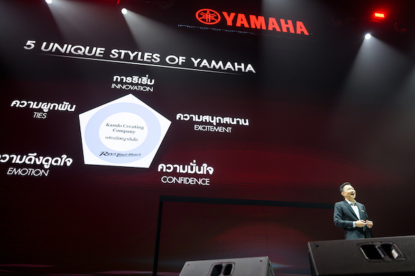 โดยทั้ง 3 กลยุทธ์หลักนี้ ยามาฮ่าจะดำเนินการควบคู่กับการทำตลาดเชิงไลฟ์สไตล์ (Lifestyle Marketing) ภายใต้แคมเปญ “FEEL THE UNIQUE EXPERIENCE…สุดทุกทางต่างทุกฟีล” ที่จะนำเสนอทั้งสินค้าใหม่ กิจกรรมทางการตลาด และประสบการณ์ที่หลากหลายให้กับลูกค้า พร้อมยกระดับการบริการ 3S (Sales, Service, Spare Parts) เพื่อสร้างความพึงพอใจสูงสุด ตามปรัชญา KANDO ของยามาฮ่า