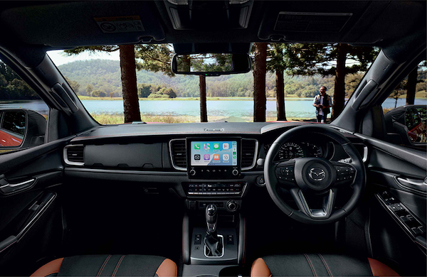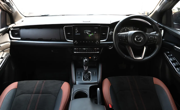 ภายในห้องโดยสารมาพร้อมแผงแดชบอร์ดฝั่งผู้โดยสารด้านหน้าดีไซน์ใหม่ ทั้งยังยกระดับชุดมาตรวัดดีไซน์ใหม่ พร้อมหน้าจอ MID แบบสี TFT ขนาด 7 นิ้ว เพิ่มฟังก์ชันแสดงมุมเอียงของตัวรถ Vehicle Tilt Information เสริมการขับขี่ในเส้นทางออฟโรด ภายในตกแต่งสีดำเงาถูกถอดออกจากคอนโซลกลาง ส่วนแผงประตู ฝาคอนโซล และงานตกแต่งตรงกลางแผงหน้าปัดมีการปรับใหม่ทั้งหมด โทนสีภายใน เปลี่ยนจากสีน้ำตาลเป็นสีดำ เบาะหนังเทียม/หนังกลับสังเคราะห์ Maztex สีดำและสีเทอร์ราคอตต้า พนักพิงศีรษะของเบาะนั่งด้านหน้าปักคำว่า BT-50
