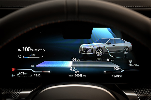เติมเต็มการใช้งานด้วยระบบจอภาพสำหรับผู้โดยสารตอนหลัง ประกอบด้วยหน้าจอสัมผัสขนาด 31.3 นิ้ว ความคมชัด 8K พร้อมระบบเสียงรอบทิศทาง Bowers & Wilkins รีโมตควบคุมแบบสัมผัสติดตั้งอยู่ที่แผงควบคุมบริเวณแผงประตู พร้อมทั้งม่านบังแสงด้านหลังจะปิดโดยอัตโนมัติเมื่อระบบจอภาพสำหรับผู้โดยสารตอนหลังทำงาน พร้อมด้วยระบบนำทางแบบ Augmented View ผสานการแสดงภาพจากกล้องหน้าเข้ากับระบบนำทางและแสดงภาพบนจอหลังพวงมาลัย