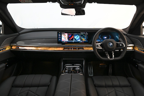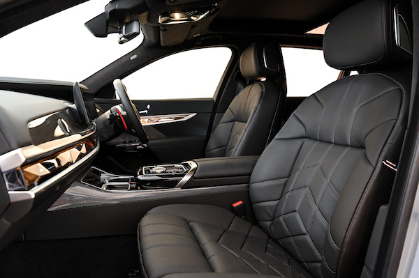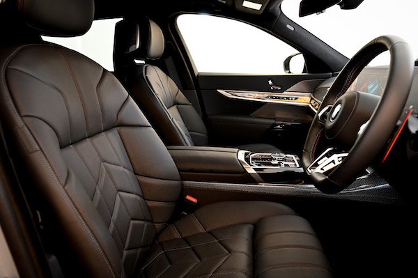 ภายในตัวรถตกแต่งด้วยวัสดุคาร์บอนไฟเบอร์ ถักด้วยวัสดุสีเงินแบบ M คอนโซลกลางสีดำเงาแบบ Piano Finish Black มาพร้อมวัสดุบุหลังคา M Alcantara สี anthracite เบาะนั่งแบบมัลติฟังก์ชันครบครันทั้งสำหรับผู้ขับขี่ ผู้โดยสารตอนหน้าและผู้โดยสารตอนหลัง มาพร้อมฟังก์ชันนวดผ่อนคลายสำหรับผู้ขับขี่และผู้โดยสารตอนหลัง ระบบระบายอากาศสำหรับเบาะที่นั่ง และระบบปรับอากาศอัตโนมัติ 4 โซน เพิ่มการไหลเวียนอากาศในห้องโดยสาร