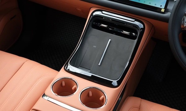 ภายในห้องโดยสารมาในโทนสีดำ พวงมาลัยมัลติฟังก์ชันหุ้มด้วยหนัง สร้างความแตกต่างด้วยตู้เย็นคอนโซลกลาง ขนาดความจุ 6.6 ลิตร มาพร้อมระบบการใช้งาน 3 โหมด (อุ่น-เย็น-ฟรีซ) ทำความเย็น-ความร้อนด้วยอุณหภูมิ -15°C ถึง 50° ทั้งยังสามารถควบคุมตู้เย็น ผ่านหน้าจอ OBU, คำสั่งเสียง, แผงควบคุม และ Application