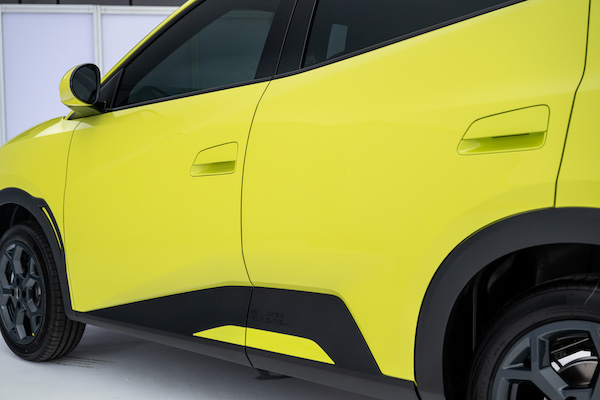 ให้ความโฉบเฉี่ยวด้วยไฟหน้า LED ทรงสปอร์ตที่ดูดุดัน (Sharp Angular Headlights) พร้อมกระจังหน้าแบบปิดทึบตามสไตล์รถยนต์ไฟฟ้า เส้นสายตัวถังมีการเล่นระดับ Beltline ที่โฉบเฉี่ยว และการตกแต่งบริเวณ C-pillar ด้วยลวดลายจุด (Dot-matrix design) ที่ได้รับแรงบันดาลใจจากผลึกน้ำแข็ง (Ice Crystals) ด้านหลัง มาพร้อมไฟท้าย LED แบบ Light Bar ลากยาวเชื่อมต่อกันทั้งสองฝั่ง เสริมความโดดเด่นด้วยไฟท้ายทรงเพชรแบบ 3 มิติ (3D Gradient Diamond-shaped Tail Lights) มาพร้อมกับล้ออัลลอยขนาด 16 นิ้ว ที่ออกแบบมาเพื่อลดแรงต้านอากาศ
