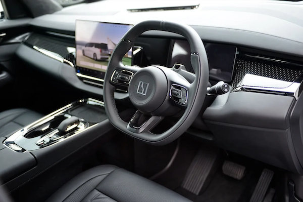 เข้ายุคสมัยด้วยหน้าจอกลางระบบสัมผัส Touchscreen ขนาด 15 นิ้ว ที่มีความละเอียดถึง 2.5K รวมถึงหน้าจอเพดาน OLED ขนาด 17 นิ้ว สำหรับผู้โดยสารตอนหลัง ความละเอียด 3K 90Hz พับเก็บด้วยระบบไฟฟ้า สามารถสั่งงานด้วยเสียง AI-Mate EVA Voice Assistant มาพร้อมระบบเสียงรอบทิศทาง Yamaha Surround Sound จัดเต็มด้วยลำโพง 30 ตำแหน่ง พร้อมลำโพงบริเวณหัวหมอนเบาะนั่ง