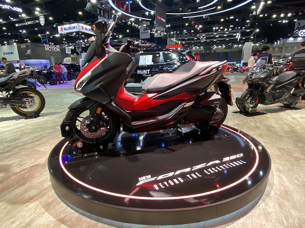 ต่อด้วย “New Honda Forza350” มาในคอนเซปต์ “Beyond the Exceptional เหนือกว่า…ทุกความเป็นที่สุด” พร้อมสีใหม่ Matte Boulevard แบบทูโทนแมตต์ เสริมภาพลักษณ์ Sport Luxury ให้โดดเด่นยิ่งขึ้น ไฟหน้า Dual LED Headlight รวมถึง Daytime Running Light และไฟเลี้ยวแบบ Built-in LED ไฟท้าย LED Taillight และระบบ Emergency Stop Signal (ESS) เพิ่มความมั่นใจในการขับขี่ กระจกบังลมหน้าไฟฟ้าปรับระดับได้ 180 มม. พื้นที่เก็บสัมภาระขนาดใหญ่ ใส่หมวกนิรภัยได้ 2 ใบ พร้อมไฟส่องสว่าง ช่องชาร์จ USB Type-C ตอบโจทย์ทุกไลฟ์สไตล์ และยังมีอีก 4 สี ได้แก่ สี Cosmic Black, สี Meteor Gray, สี Sunstorm Red และสี Stellar White จำหน่ายในราคาแนะนำที่ 185,340 บาท