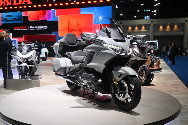 ตามด้วยรถจักรยานยนต์ทัวริ่งระดับท็อปคลาส หนึ่งในตำนานทัวริ่งไบค์ระดับโลก “New Honda GOLDWING” ภายใต้คอนเซปต์ “GO FLY ให้ทุกตำนานทะยานออกไป” มาพร้อมสีใหม่ Pearl Deep Mud Gray ด้วยราคาแนะนำ 1,375,000 บาท และสี Gunmetal Black Metallic ราคาแนะนำที่ 1,385,000 บาท