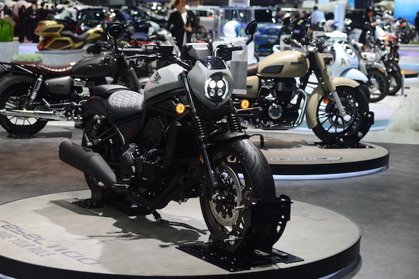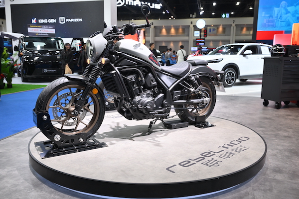 “New Honda Rebel 1100” ภายใต้คอนเซปต์ “Ride Your Rule ขบถ…เพื่อกำหนดนิยามใหม่” อัปเดตสีใหม่ Pearl Deep Mud Grey เพิ่มความโดดเด่นและสดใหม่ยิ่งขึ้น สะท้อนเอกลักษณ์ของรถจักรยานยนต์สไตล์คัสตอมบ็อบเบอร์ที่มีกลิ่นอายครุยเซอร์คลาสสิกอย่างชัดเจน เครื่องยนต์ 2 สูบเรียง ขนาด 1,084 ซี.ซี. โดยรุ่น DCT จำหน่ายด้วยราคาแนะนำ 446,000 บาท และ DCT Touring Edition ราคาแนะนำที่ 496,000 บาท