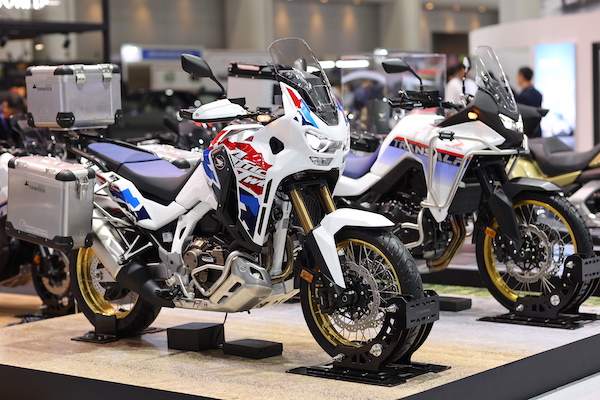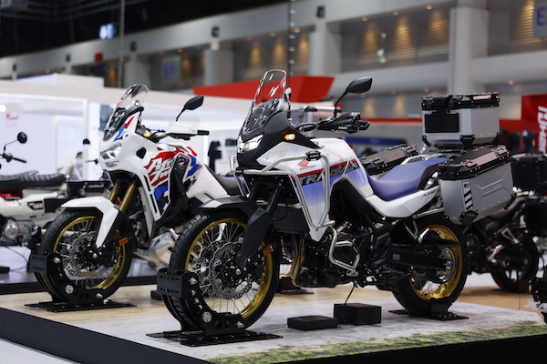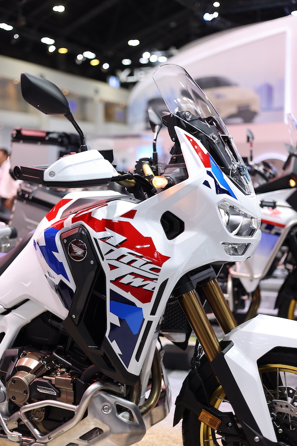 ตามมาด้วยไลน์อัปรถจักรยานยนต์สายแอดเวนเจอร์ นำโดย New Honda CRF1100L Africa Twin ภายใต้คอนเซปต์ ‘True Adventure Never End การผจญภัยที่แท้จริง ลุยได้ไม่มีวันจบ’ และ New Honda XL750 TRANSALP ภายใต้คอนเซปต์ ‘Mountains Are Calling เมื่อจุดพีกเรียกหา…ได้เวลาสัญชาตญาณลุย’ สองโมเดลที่ผสานสมรรถนะและความคล่องตัวสำหรับผู้รักการผจญภัยอย่างแท้จริง โดย New Honda CRF1100L Africa Twin DCT โดดเด่นด้วยสีใหม่ PEARL GLARE WHITE ผสานลายกราฟิกไตรคัลเลอร์ใหม่ให้ความ Aggressive Rally มากขึ้น มาพร้อมเครื่องยนต์ Parallel Twin พร้อมล้อหน้าใหม่ขนาด 19 นิ้ว และ New Honda CRF1100L Africa Twin MT สีใหม่ GRAND PRIX RED มาพร้อมยางแบบ Tubeless ใหม่ อวดความเป็นเอ็นดูโร่ตัวจริง ขณะที่ New Honda XL750 TRANSALP มาพร้อม New LED Headlight ดีไซน์ไฟหน้า LED ใหม่ที่รวมไฟสูงและไฟต่ำในชุดเดียว ช่วงล่างเซ็ตอัปใหม่ รับแรงกระแทกได้ดีขึ้น เครื่องยนต์ Parallel Twin 755 ซี.ซี. 8 วาล์ว น้ำหนักรวมเพียง 210 กก. พร้อมล้อหน้า 21 นิ้ว ล้อหลัง 18 นิ้ว และระบบ ABS ที่เปิด–ปิดได้