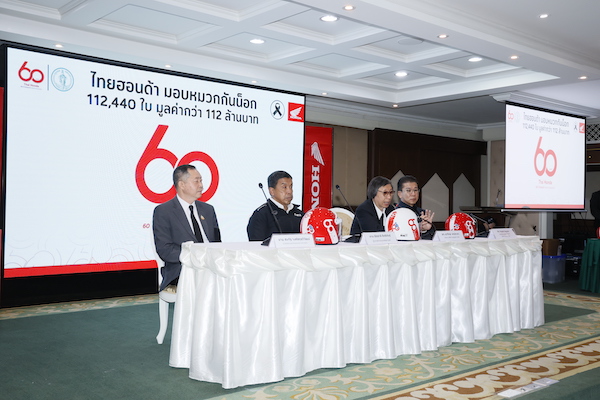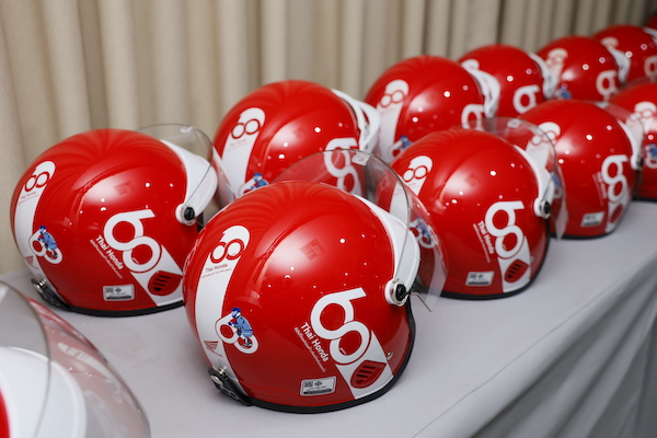 ด้าน มร.ฮายาโตะ เซกุจิ รองประธานกรรมการบริหาร บริษัท ไทยฮอนด้า จำกัด กล่าวว่า “เนื่องในโอกาสครบรอบ 60 ปี ไทยฮอนด้า บริษัทได้ดำเนินโครงการภายใต้แนวคิด ‘60 ปี ไทยฮอนด้า ขับขี่ปลอดภัย เพื่อสังคมไทยที่ยั่งยืน’ โดยตั้งใจส่งมอบหมวกกันน็อกจำนวน 60,000 ใบ และได้รับความร่วมมือจากผู้จำหน่ายรถจักรยานยนต์ฮอนด้าทั่วประเทศ ร่วมสมทบเพิ่มเติมอีก 52,440 ใบ ทำให้สามารถส่งมอบหมวกกันน็อกรวมทั้งสิ้น 112,440 ใบ ครอบคลุมครบทั้ง 77 จังหวัดทั่วประเทศ”