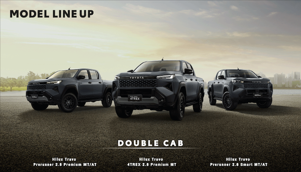 โตโยต้า สร้างกระแสรถกระบะ ครั้งแรกของโลก เปิดตัว “ไฮลักซ์ ทราโว่” มิติใหม่ หลอมรวมดีเอ็นเอสู่เจเนอเรชันที่ 9 ด้วยแนวคิด “GREATER TOGETHER…สู่ความยิ่งใหญ่ไปด้วยกัน ยกระดับดีไซน์ ตอบโจทย์การใช้งานทั้งรูปแบบน้ำมันและไฟฟ้า (บีอีวี) มาด้วยกัน 4 รุ่นหลัก 17 รุ่นย่อย ราคาเริ่ม 789,000 – 1,366,000 บาท ส่วน ไฮลักซ์ ทราโว่-อี ดับเบิลแค็บ 4TREX ตั้งราคา 1,491,000 บาท พร้อมส่งมอบตั้งแต่พฤศจิกายน-ธันวาคม เป็นต้นไป