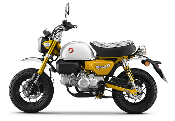 New Honda Monkey มาพร้อมฟีเจอร์ระบบเบรก ABS ใหม่ ช่วยเพิ่มความมั่นใจในการขับขี่ อีกทั้งขับขี่ง่ายและขนาดกะทัดรัด เครื่องยนต์ขนาด 125 ซี.ซี. ส่งกำลังด้วยระบบคลัตช์มือ เกียร์ 5 สปีด ตอบสนองความแสบแบบขั้นสุด วางจำหน่ายใน 3 เฉดสีใหม่ ได้แก่ สีดำ Matt-Naughty Black, สีเทา-แดง Silver-Red Mischief และสีขาว-เหลือง Cheeky-Yellow ในราคาแนะนำ 106,400 บาท