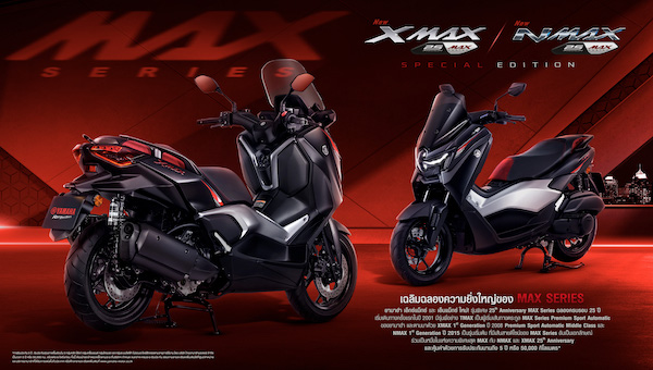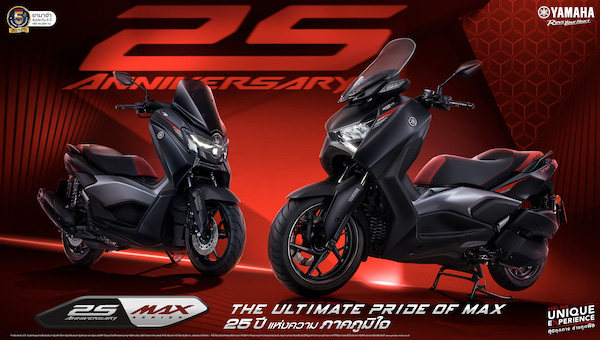 “ไทยยามาฮ่า” เฉลิมฉลอง 25 ปีแห่งความภาคภูมิใจของตระกูล MAX Series เปิดตัว XMAX & NMAX รุ่นพิเศษ “25th Anniversary MAX Series” โดยวางจำหน่ายในราคาแนะนำ เริ่มต้นที่ 107,500 บาท
