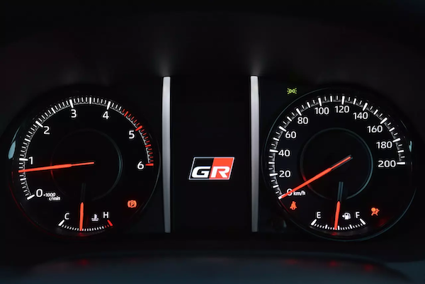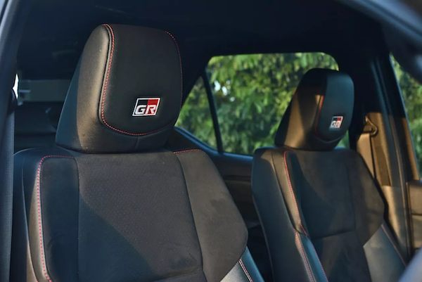 ขยับมาดูที่ภายในห้องโดยสาร มาในโทนสีดำ แผงแดชบอร์ดหน้า และแผงประตูบุนุ่มหุ้มด้วยหนังสีทูโทน ดำ-แดง ช่องแอร์ด้านหน้าตกแต่งด้วยแถบสีเงินและโครเมียม แผงควบคุมกระจกหน้าต่างตกแต่งด้วยสีดำเมทัลลิค แสดงความเป็นตัวตนที่ชัดเจนด้วยสัญลักษณ์ GR บริเวณหัวเบาะนั่งคู่หน้า พวงมาลัย และปุ่มสตาร์ตเครื่องยนต์ พร้อมด้วยแป้นคันเร่งและแป้นเบรกสไตล์สปอร์ต